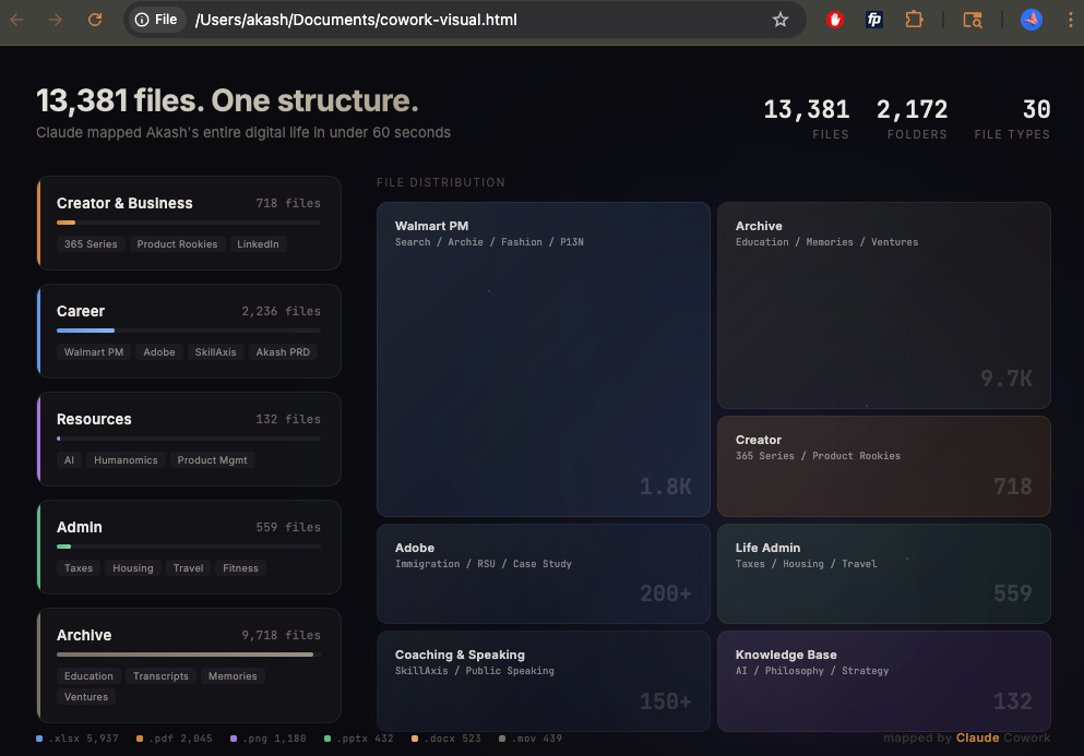 I hadn’t organized my Documents folder since 2022 and it was built for a version of me that was still in school, still early-career, still treating “save everything just in case” as a system. I’m a PM at Adobe now. I publish a newsletter. I have side hustles. I vibe-code projects. I invest. I create content. My file system was still organized for a grad student who might need those folders someday.
