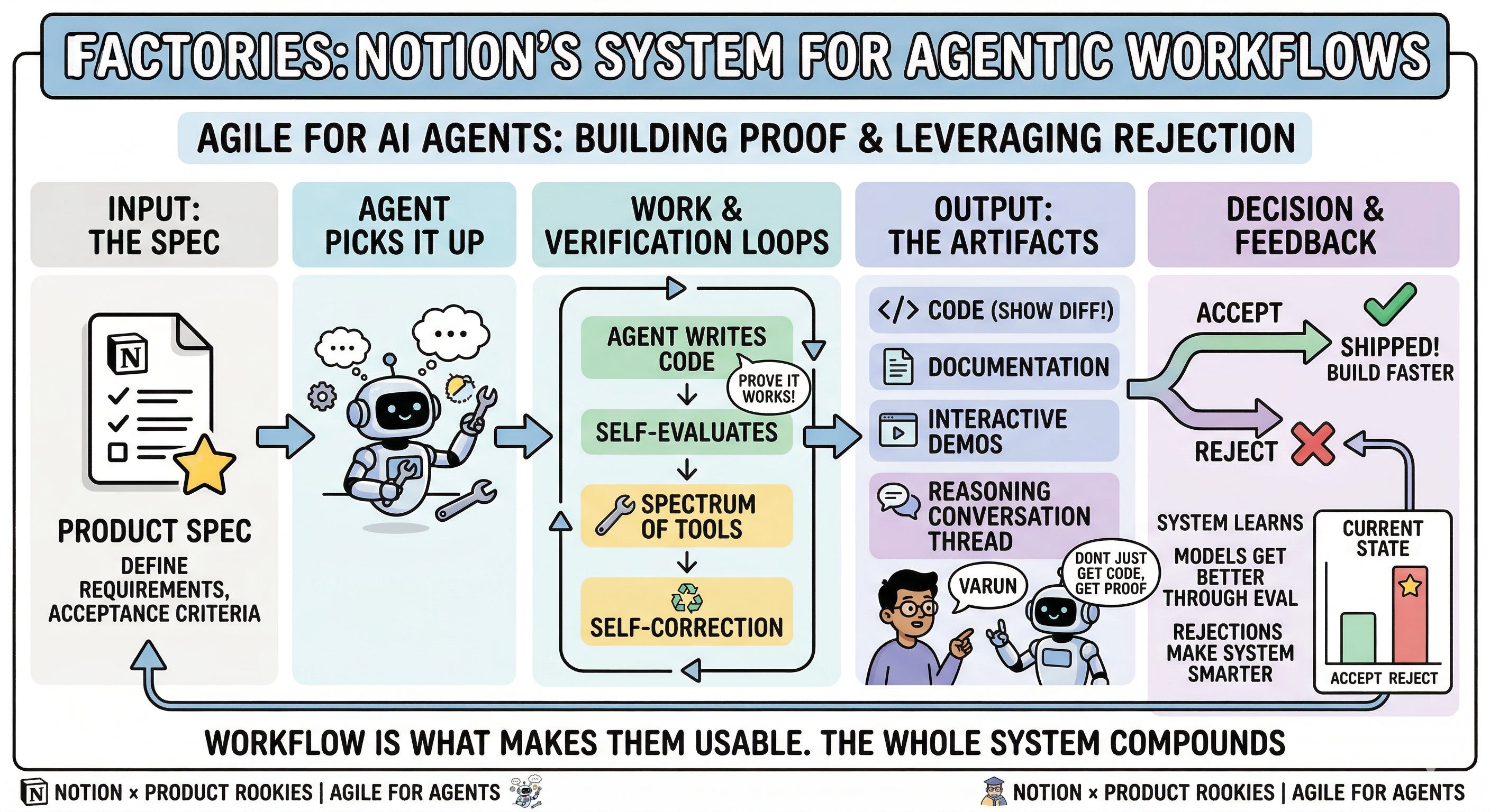The reject column was still longer than the accept column - Varun was honest about that. But every rejection sharpens the specs, improves the skills, and teaches the system what the team actually expects. The models will get better, workflow is what makes them usable.